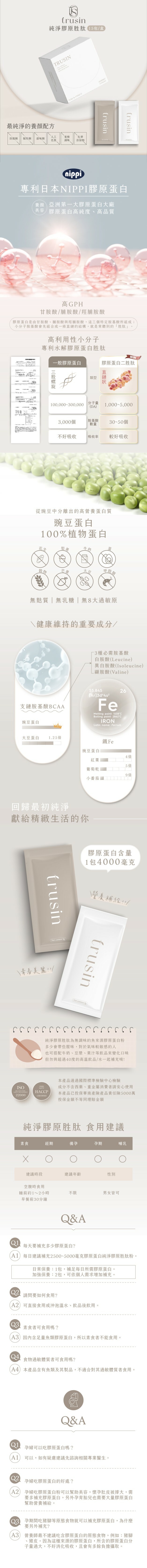 成分:專利日本NIPPI膠原蛋白(魚來源)、豌豆蛋白量:5公克/包,15包/盒
